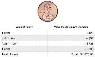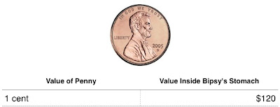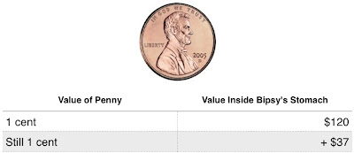 As I return back to the Dr.’s office, the vetconfirms that Bipsy indeed swallowed a penny.